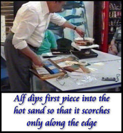 between your sand scorched pieces as in "Example