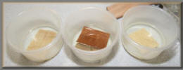 To bleach them in this fashion they were stood on their end in a container of bleach. They are, from left to right: As you will note: the mid tones work best. The tables below show you the changes you can achieve with 3 hours bleaching |